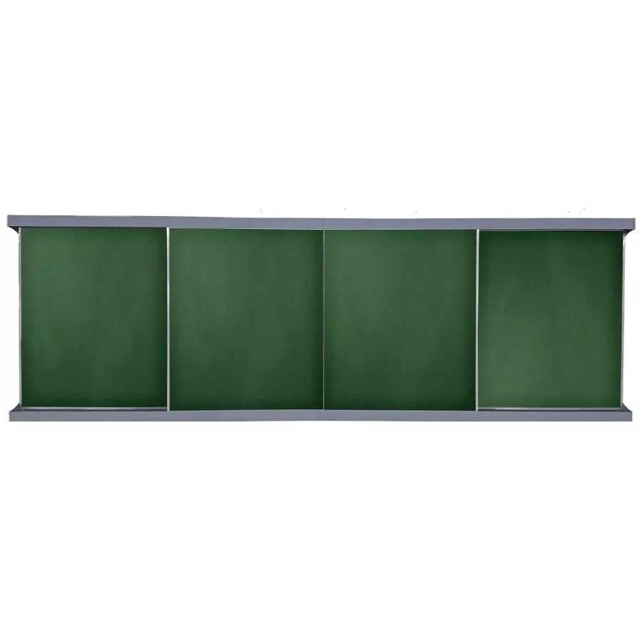 Рельсовая система модульного типа – это система из двух стационарных и двух передвижных классных досок (меловых/маркерных). Классные доски установлены в двух модулях, представляющих из себя собранную конструкцию из алюминиевых направляющих и профилей. В центре расположено пространство для установки интерактивной панели.